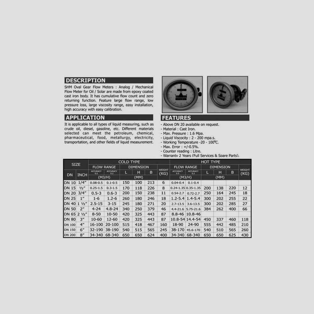 SHM Oval Gear Flow Meters : Analog/Mechanical Flow Meter fr Oil/Solar are made from epoxy coated cast iron body. It has cumulative flow count and zero returning function. Feature large flow range easy installation, high accuracy with easy calibration.